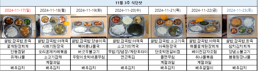 2024년 11월 3주 식단표